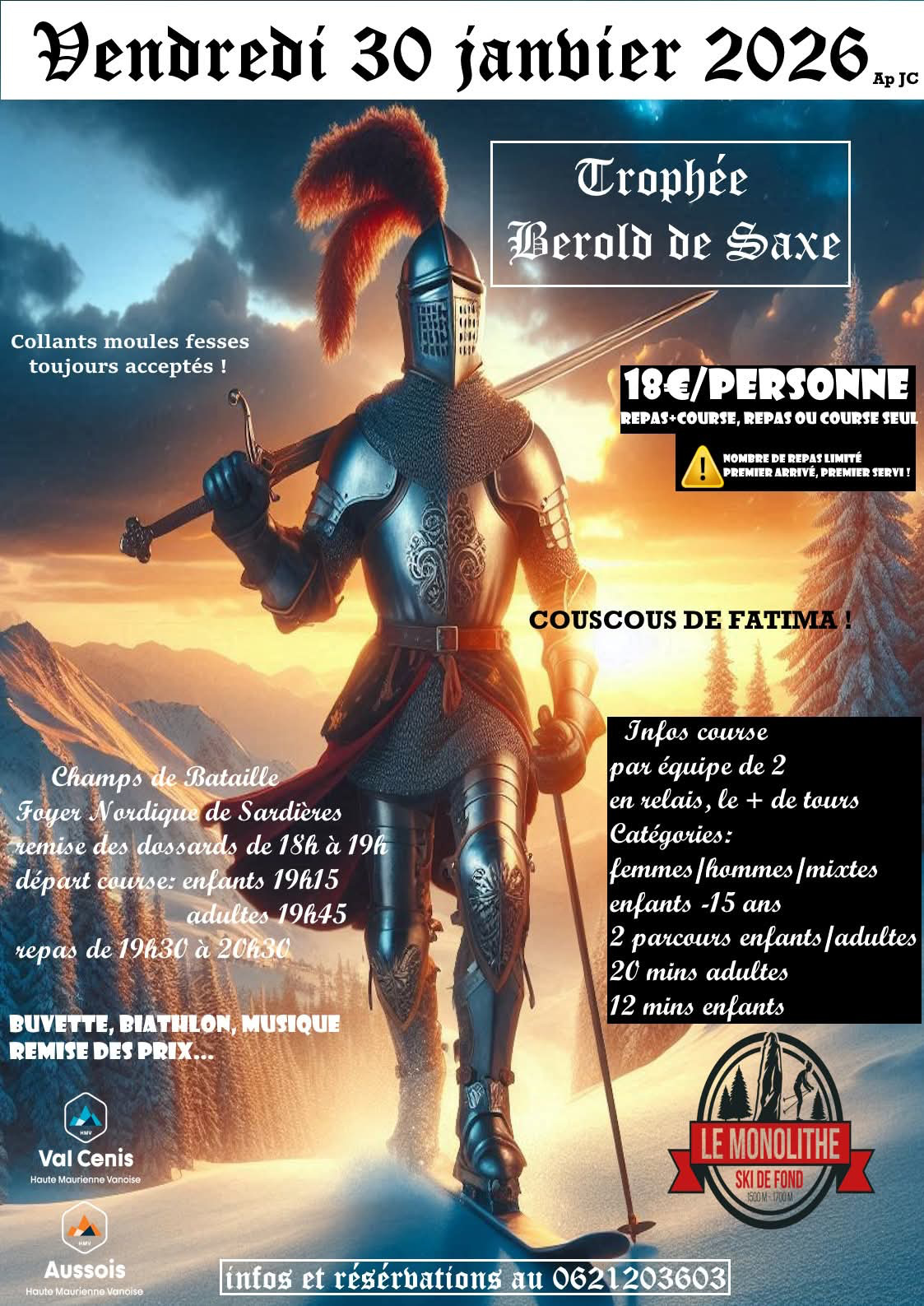 Vendredi 30 Janvier : Course nocturne "Bérold de Saxe" organisée par Monolithe Ski de Fond
