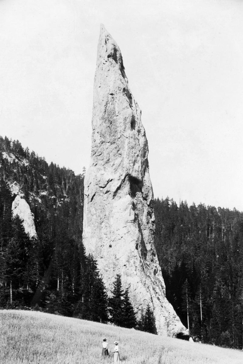 Une fois à la sortie du lotissement, suivez le paneau indiquant la direction du Monolithe de Sardières. Après avoir marché 15 minutes, retrouver l'endoit où a été prise la photo vers 1910. Ce n'est pas facile de trouver le même endroit, les arbres ont bien poussé en 100 ans.